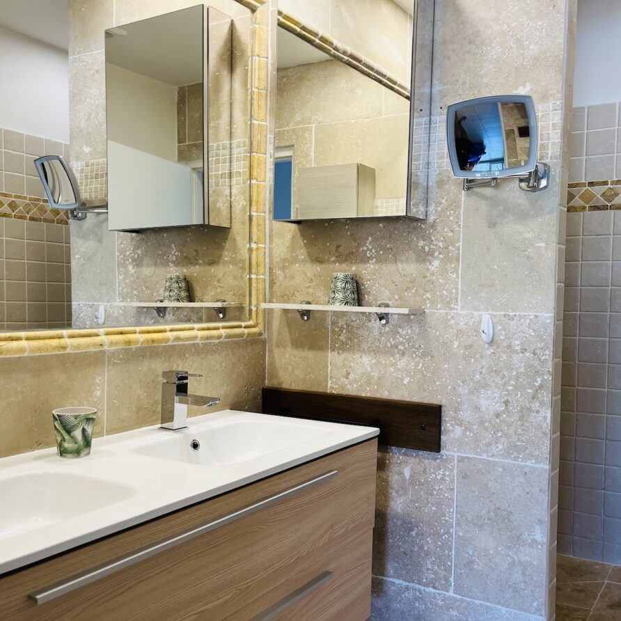 On the man level: fully equipped modern kitchen, laundry room, toilet, welcoming living area, opening on a nice terrace and sun deck.