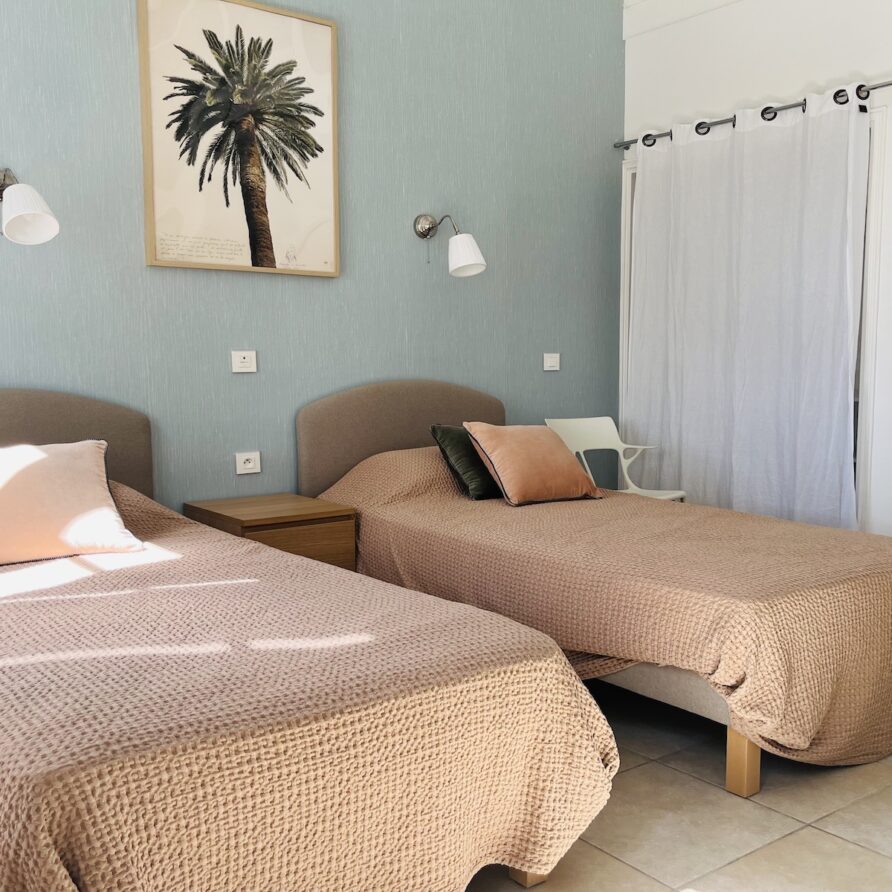 One offers 2 twin beds which can be joined in a comfortable king-size bed and the second one has a terrace with lounge chairs and a wonderful view of the Beach