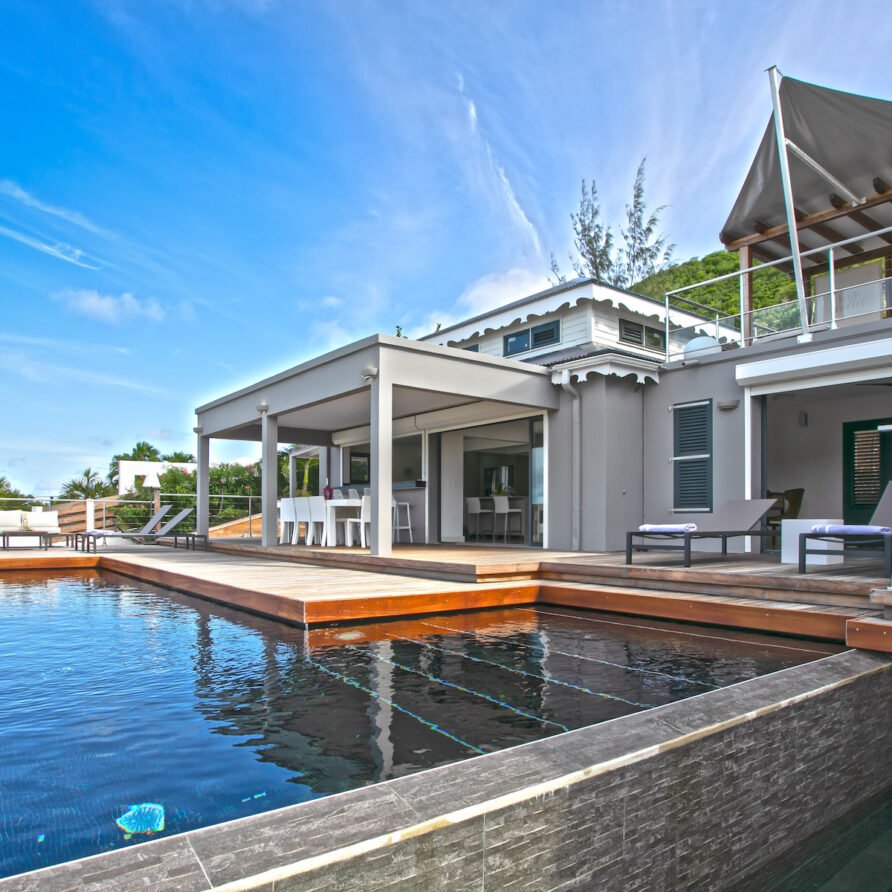 Villa Z’Abricot, St Martin. The Z’Abricot Villa is located on a hillside and has a contemporary feel. It is located on Mont Vernon in St. Martin. It has been recently renovated and offers space for up to 12 guests with six bedrooms and four bathrooms. The home is friendly and inviting with excellent décor, access to the ocean breeze, and air conditioning. The location places guests near fine dining restaurants, beach cafes, and grocery stores. It’s the ideal destination for a family vacation on a tropical island.